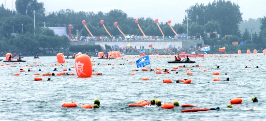 千人橫渡,萬人觀看,與母親河親密接觸。5月25日上午,2014中國(三門峽)橫渡母親河活動(dòng)在天鵝湖國家城市濕地公園黃河水域成功舉辦,全國28個(gè)?。▍^(qū)、市)及中國香港、中國澳門79個(gè)城市105支代表隊(duì)2658人參加橫渡,創(chuàng)造了全國公開水域游泳的新紀(jì)錄。